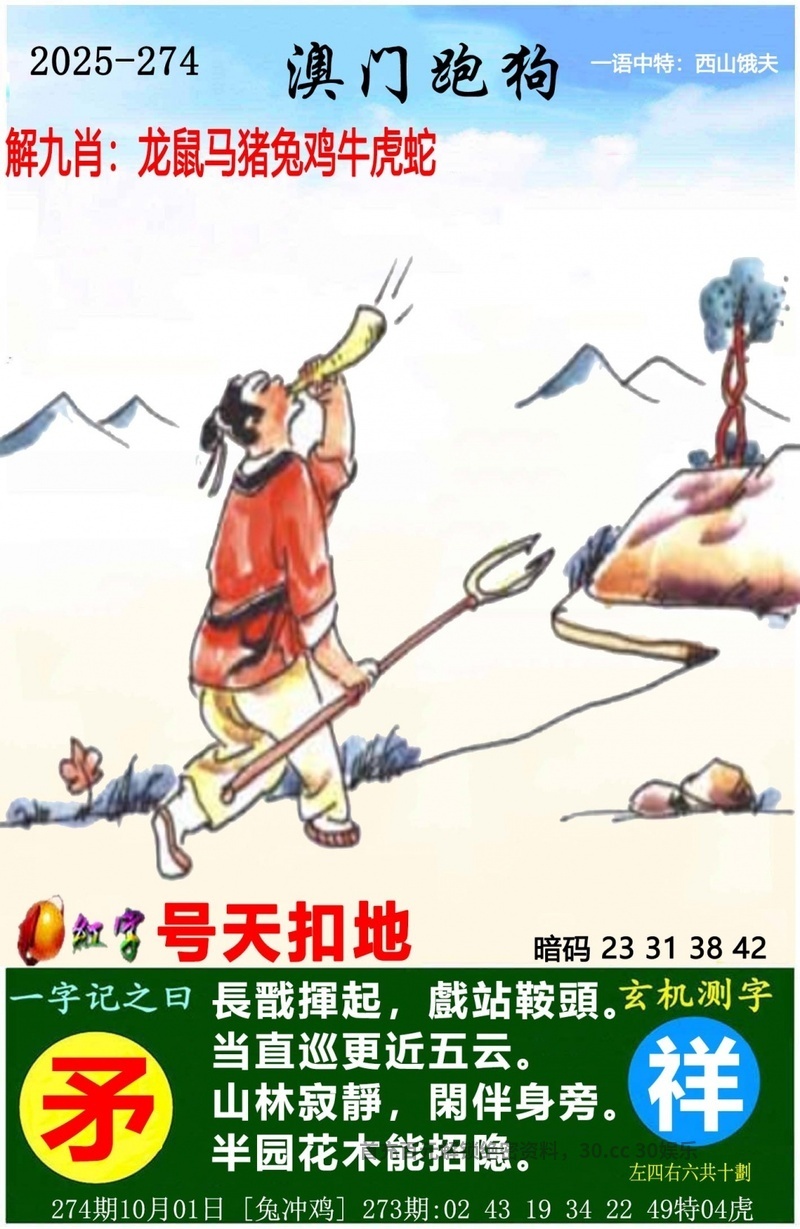 274期:绝杀三肖✎鼠马羊📖开:狗44中 |